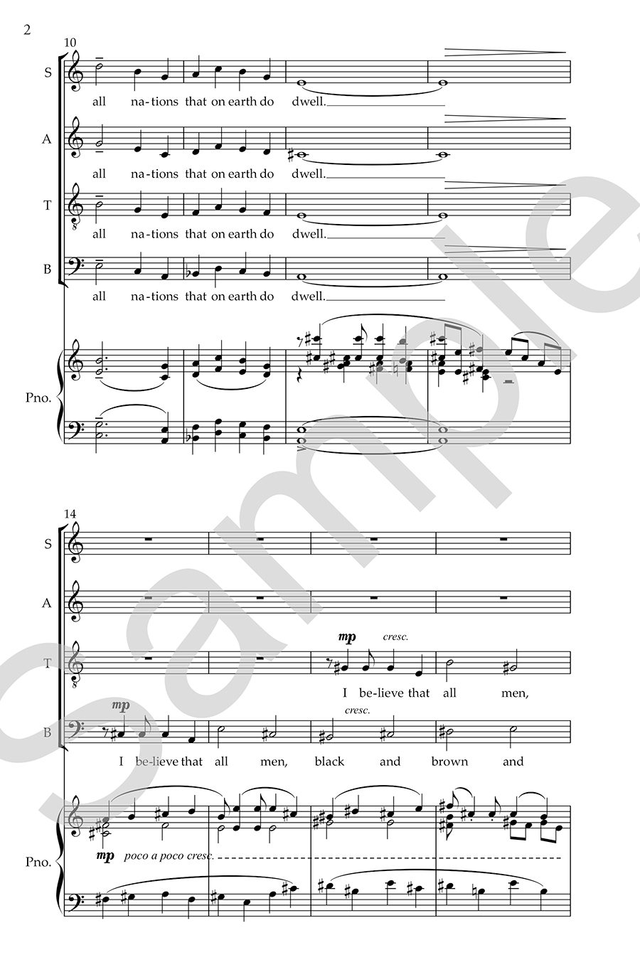 The text for this choral masterpiece is W.E.B Du Bois’ “Credo” (1904), promoting racial justice, equality and harmony. The piano/vocal score was the original score prepared by the composer. This is not a piano reduction.